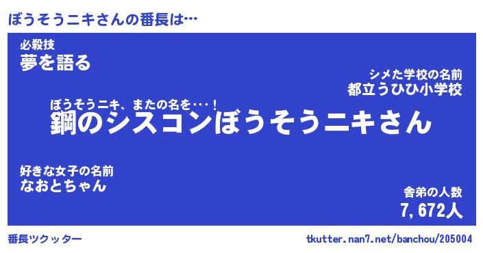 ヘコむあだ名 | 『ぼうもー』『豆乳』『ぼうっ子』 |