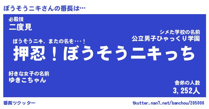 | ポケモン風あだ名 | 『ボウチュウ』『ボウソダネ』 |