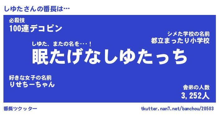 | 伝説のあだ名 | 『封印されしスナイパーしゆた』 |