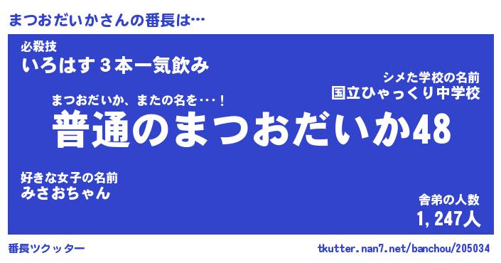 | ピコ太郎風あだ名 | 『マコ史郎』『ピマ五郎』『マツ十郎』 |