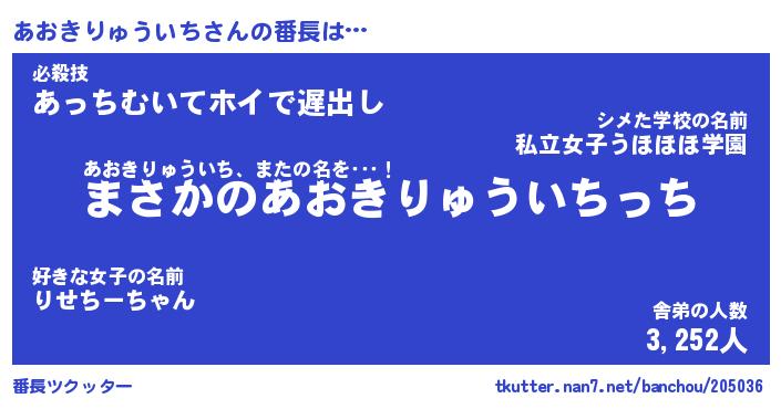 | 肩書あだ名 | 『あおきりゅういち御曹司』 |