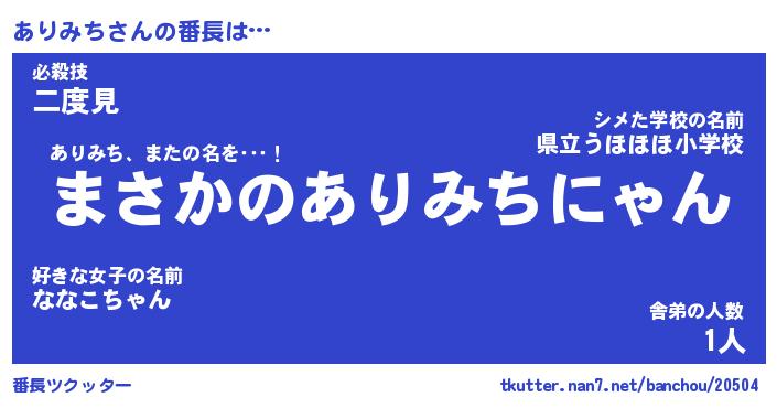 | 意味不明あだ名 | 『ペロリンありみち』『永久保存ありみち』 |