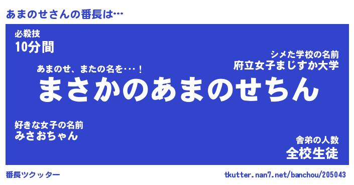 | 伝説のあだ名 | 『伝説のスナイパーあまのせ』 |