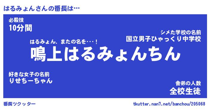 | 2回繰り返すあだ名 | 『はるはる』『ははるる』『いらいら』 |