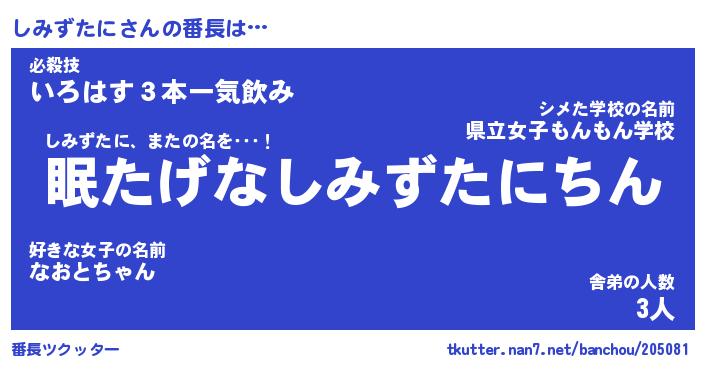 | 伝説のあだ名 | 『封印されしスナイパーしみずたに』 |