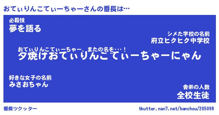 | 肩書あだ名 | 『おてぃりんこてぃーちゃー御曹司』 |