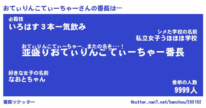 | 男性向けラノベタイトル風あだ名 | 『おてぃりんこてぃーちゃーの憂鬱』 |