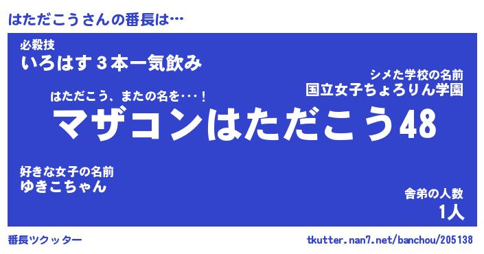 | 肩書あだ名 | 『はただこう店長』『はただこう国家主席』 |