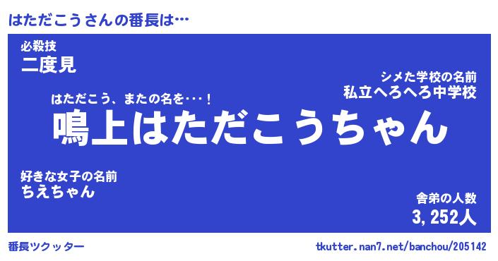 | ピコ太郎風あだ名 | 『ハコ五郎』『ピハ四郎』『ハタ十郎』 |