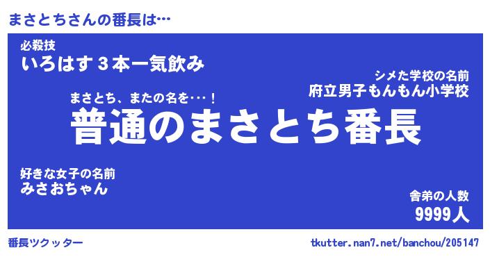 | ピコ太郎風あだ名 | 『マコ三郎』『ピマ八郎』『マサ十郎』 |