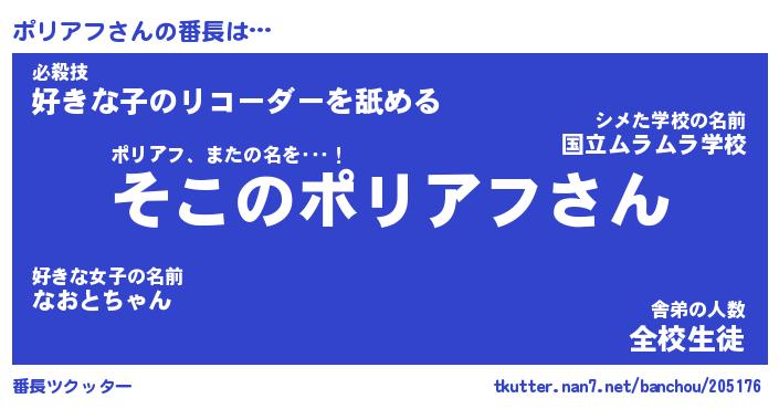 | 意味不明あだ名 | 『ペロリンポリアフ』『永久保存ポリアフ』 |