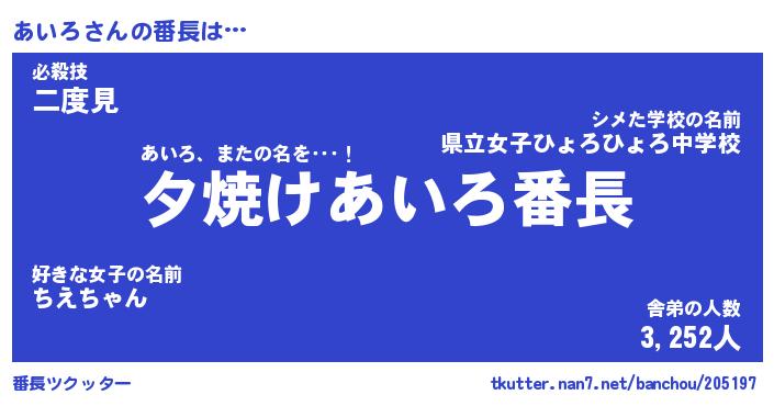 | 伝説のあだ名 | 『封印されしスナイパーあいろ』 |