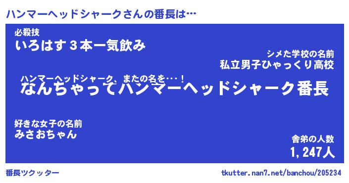 | ヒーロー風カッコイイあだ名 | 『スーパーハンマーヘッドシャーク』 |