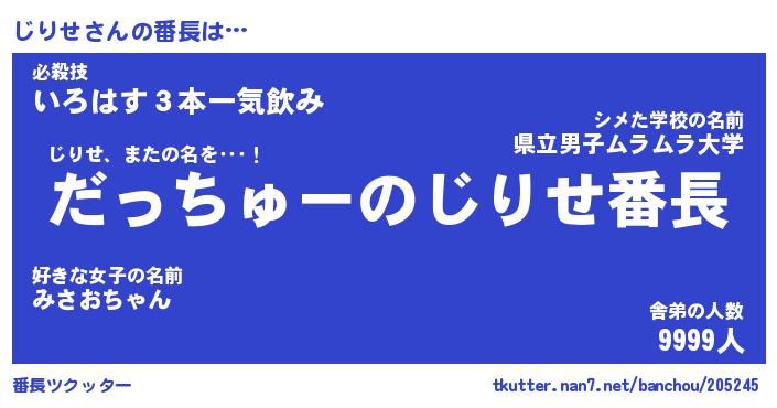 | 伝説のあだ名 | 『伝説のスナイパーじりせ』 |