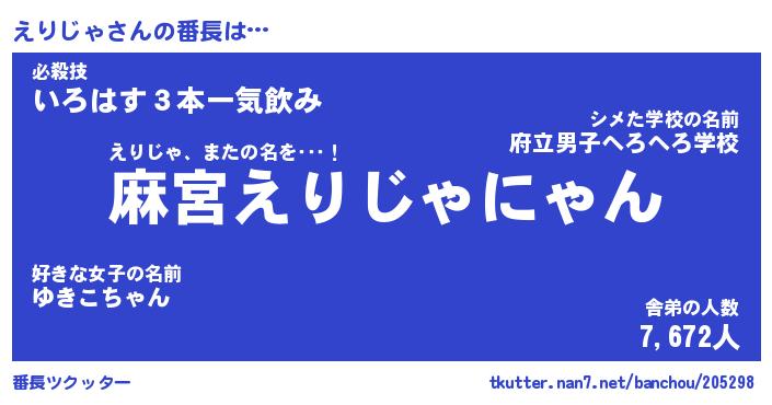 | 意味不明あだ名 | 『ペロリンえりじゃ』『永久保存えりじゃ』 |