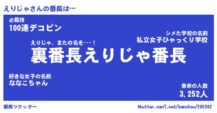 | 意味不明あだ名 | 『ペロリンえりじゃ』『永久保存えりじゃ』 |