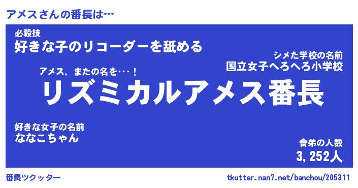 | 意味不明あだ名 | 『ペロリンアメス』『アメスフォーエバー』 |