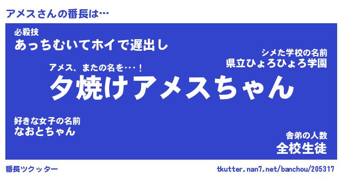 | 意味不明あだ名 | 『ペロリンアメス』『アメスフォーエバー』 |