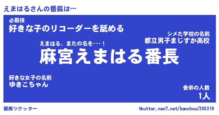 | 意味不明あだ名 | 『ペロリンえまはる』『永久保存えまはる』 |