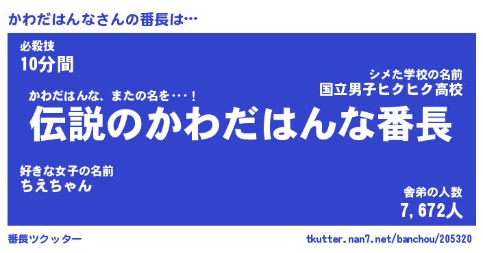 | ヒーロー風カッコイイあだ名 | 『スーパーカワダハンナ』『炎刃騎士カワ』 |