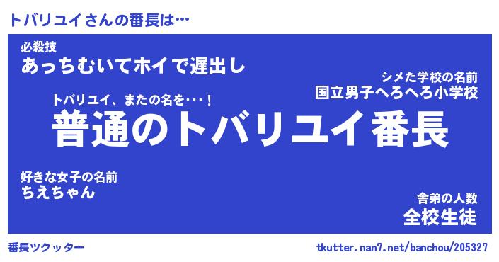 | ファンタジー風あだ名 | 『トバフェル』『エターナルトバリユイー』 |