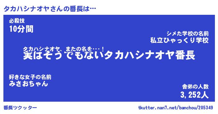 | 男性向けラノベタイトル風あだ名 | 『タカハシナオヤアートオンライン』 |