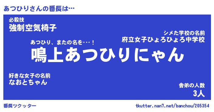 | 意味不明あだ名 | 『ペロリンあつひり』『永久保存あつひり』 |