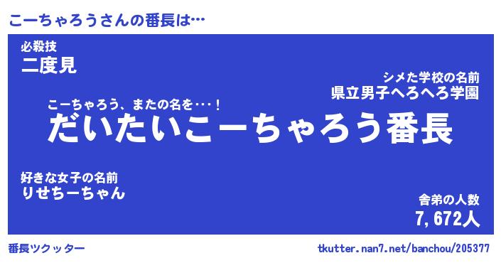 | ピコ太郎風あだ名 | 『ココ六郎』『ピコ一郎』『コー三郎』 |
