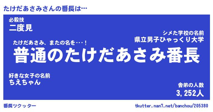 | ポケモン風あだ名 | 『タケチュウ』『タケダダネ』 |