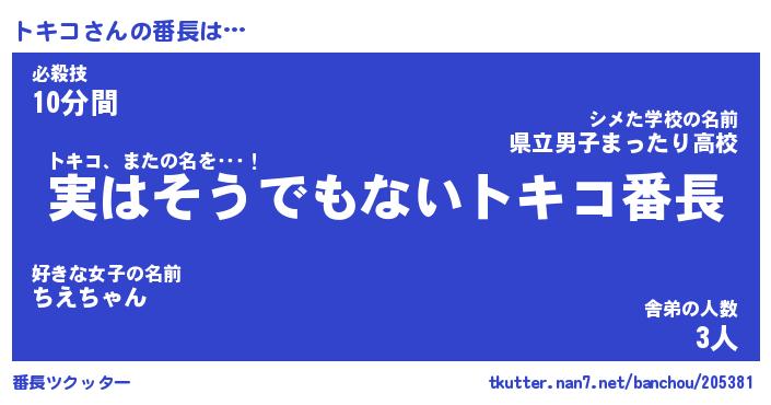 | ファンタジー風あだ名 | 『トキフェル』『エターナルトキコー』 |