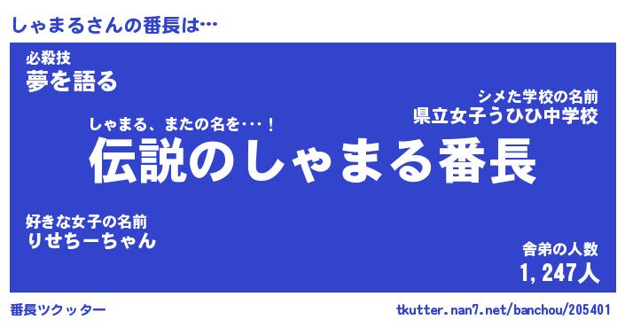 | 男性向けラノベタイトル風あだ名 | 『しゃまるの憂鬱』 |