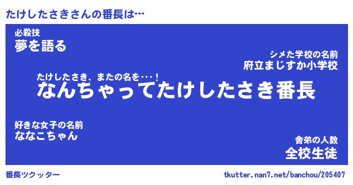 | ピコ太郎風あだ名 | 『タコ四郎』『ピタ三郎』『タケ四郎』 |
