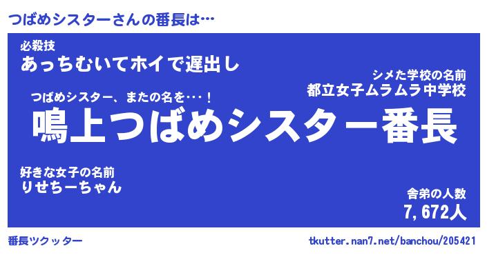 | 恥ずかしいあだ名 | 『プリティーつばめシスター』『つばちん』 |