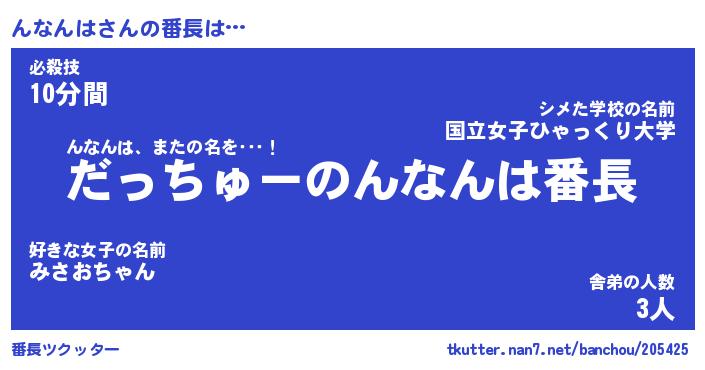 | ヒーロー風カッコイイあだ名 | 『スーパーンナンハ』『暗黒騎士ンナ』 |