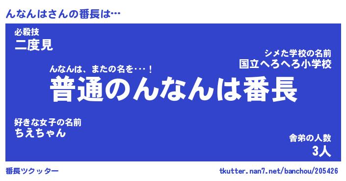 | ポケモン風あだ名 | 『ンナチュウ』『ンナンダネ』 |