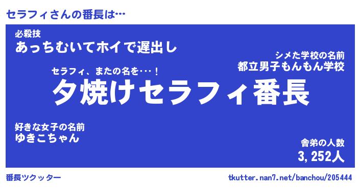 | 意味不明あだ名 | 『ペロリンセラフィ』『永久保存セラフィ』 |