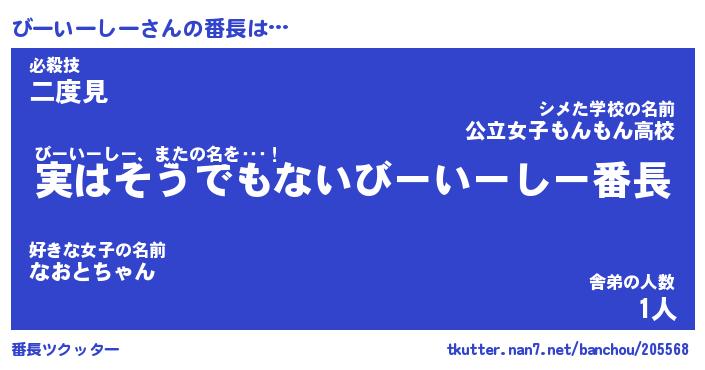 | 2回繰り返すあだ名 | 『びーびー』『びびーー』『いらいら』 |