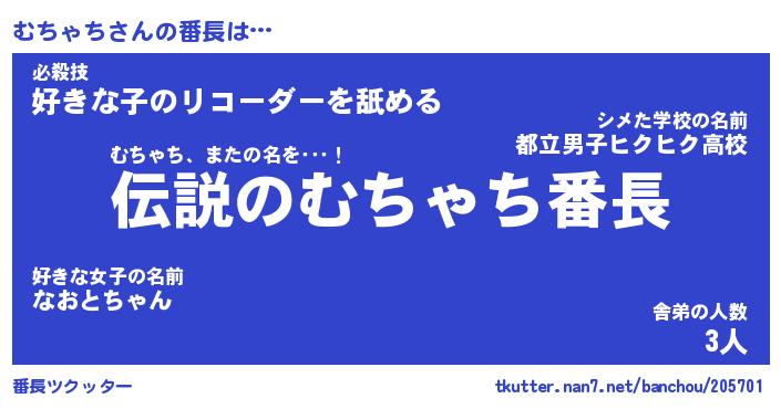 | 意味不明あだ名 | 『ペロリンむちゃち』『永久保存むちゃち』 |