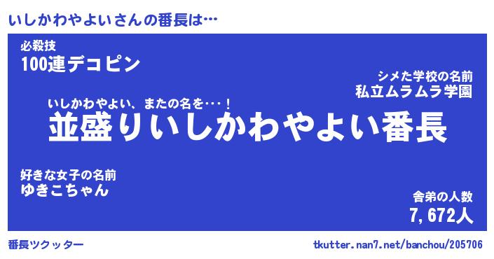 | ピコ太郎風あだ名 | 『イコ次郎』『ピイ二郎』『イシ太郎』 |
