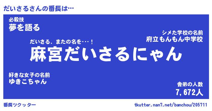 | ヘコむあだ名 | 『だいもー』『豆乳』『だいぷりん』 |