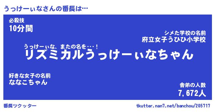 | 男性向けラノベタイトル風あだ名 | 『うっけーぃなの憂鬱』 |
