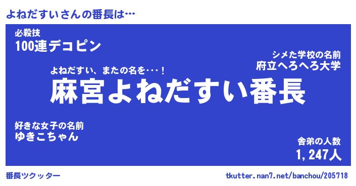 | 2回繰り返すあだ名 | 『よねよね』『よよねね』『いそいそ』 |