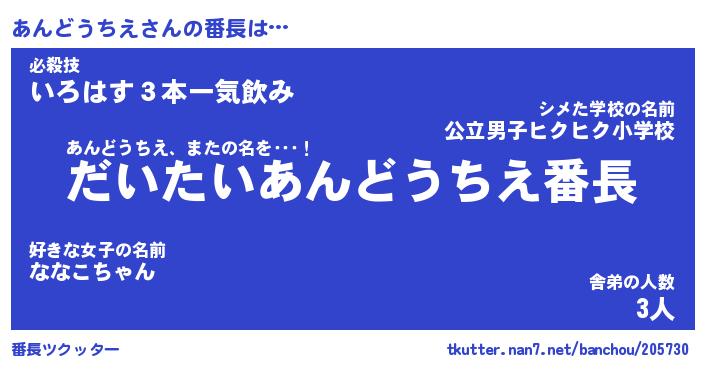 | 肩書あだ名 | 『あんどうちえ店長』『あんどうちえ担任』 |