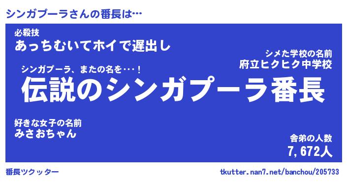 | ヒーロー風カッコイイあだ名 | 『スーパーシンガプーラ』『炎刃騎士シン』 |