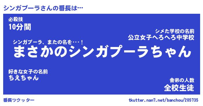 | ヒーロー風カッコイイあだ名 | 『スーパーシンガプーラ』『魔戒騎士シン』 |