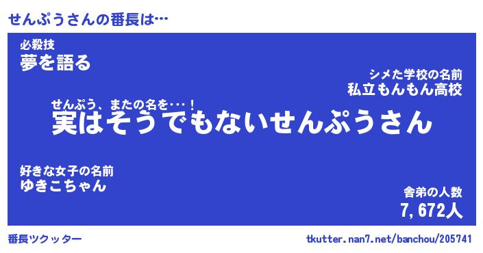 | 意味不明あだ名 | 『ペロリンせんぷう』『永久保存せんぷう』 |