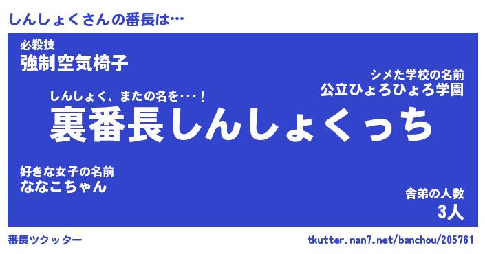 | 2回繰り返すあだ名 | 『しんしん』『ししんん』『いらいら』 |