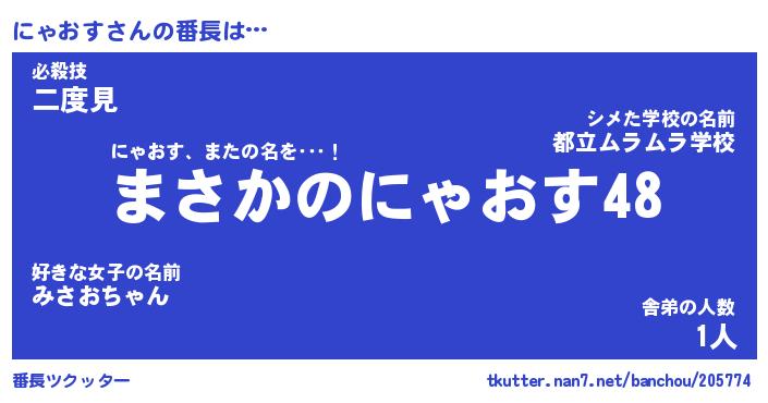 | 伝説のあだ名 | 『伝説のスナイパーにゃおす』 |