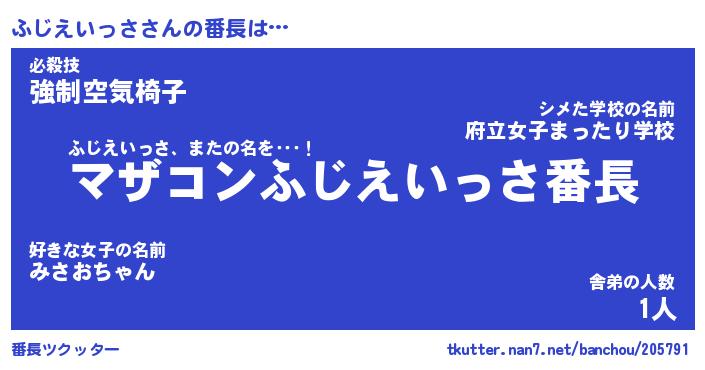 | 伝説のあだ名 | 『封印されしスナイパーふじえいっさ』 |