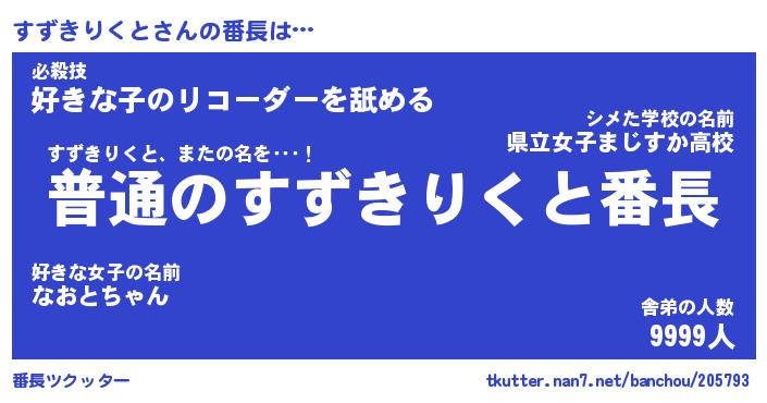 | ポケモン風あだ名 | 『スズチュウ』『スズキダネ』 |
